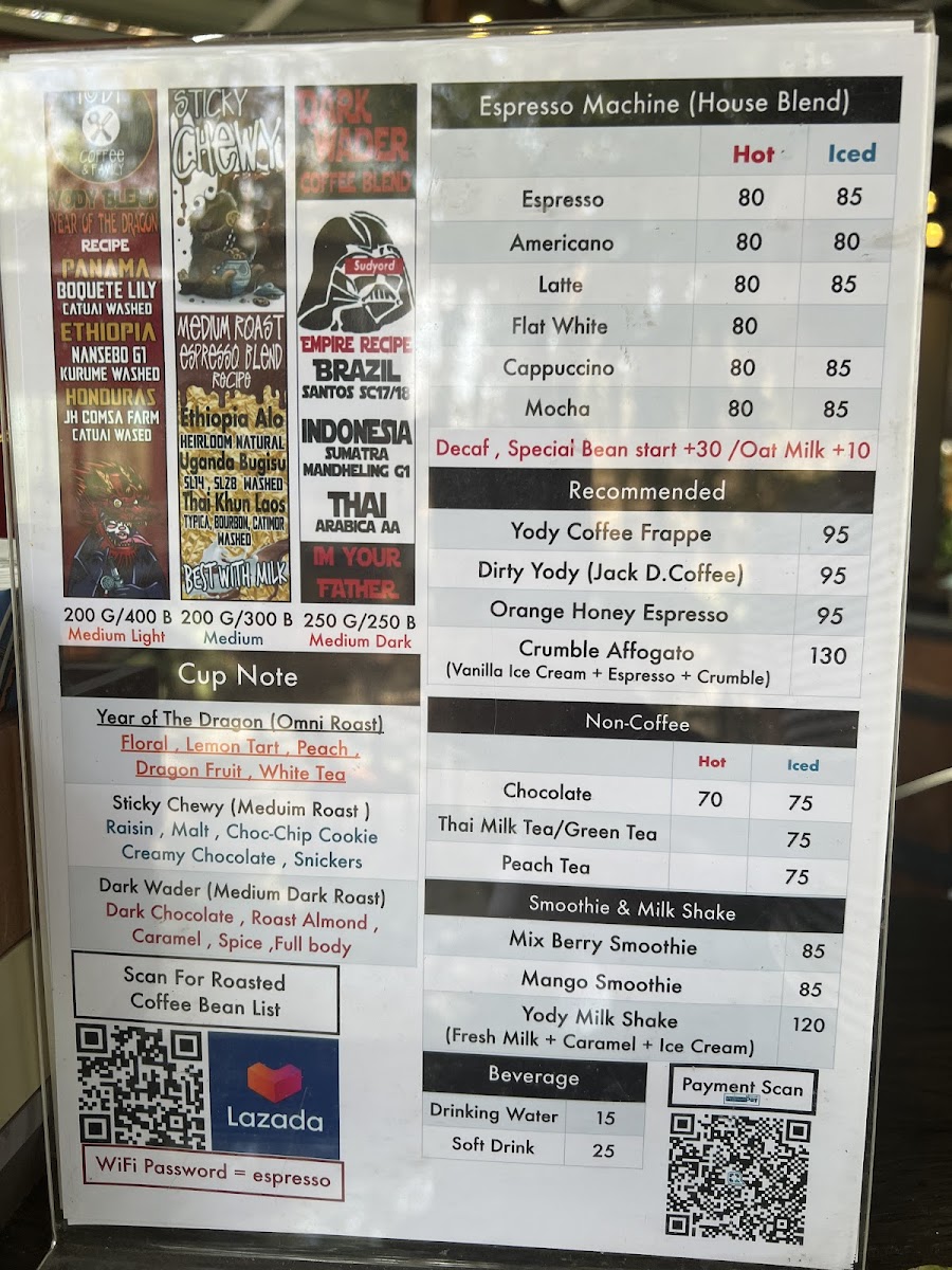 Yody Coffee & Family Specialty Coffee Maerim Menu